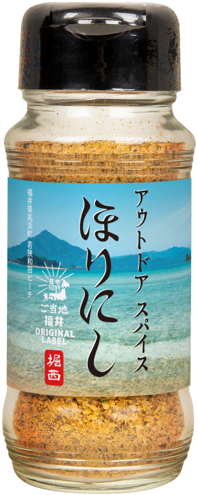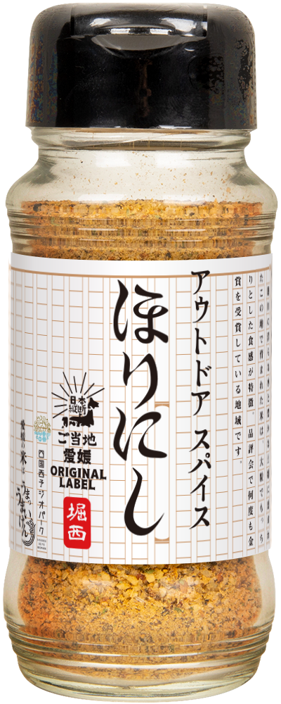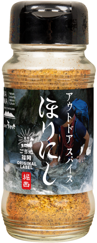 5年の歳月をかけ完成した万能調味料「アウトドアスパイスほりにし」のかつらぎ町オリジナルラベル