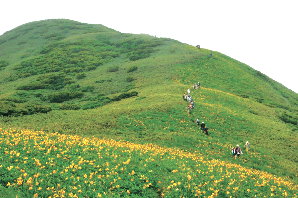薬師岳から和賀岳(仙北市)に続くニッコウキスゲ群落は「花の百名山」にも選ばれており、全国各地から登山客が訪れます。