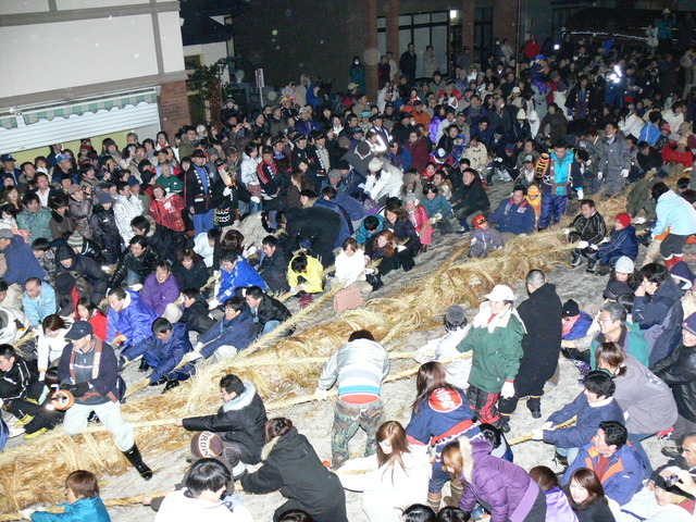 厳寒の夜、約7千人が参加し、渾身の力で引き合うこの壮大なイベントは、室町時代から続く歴史と伝統を今に伝えています。勝負の結果によって、上町が勝てば米の値段が上がり、下町が勝てば豊作になると伝えられており、地域の豊穣と繁栄を占う重要な行事です。