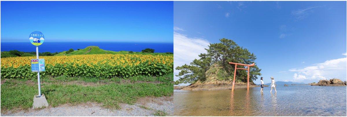 宗像市には、大島と地島という二つの個性あふれる離島があります。大島では、風車が立ち並ぶ展望台から玄界灘を一望でき、晴れた日には神宿る島「沖ノ島」まで見渡せる絶景が広がります。地島は「椿の島」として知られ、冬から早春にかけて島内各所で可憐な椿が咲き誇り、散策路を彩ります。海と自然、そして季節の花々が織りなす景観は、訪れる人の心を静かに癒してくれます。