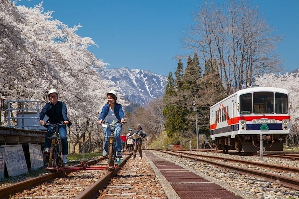 春は桜、秋は紅葉も一緒に楽しむことができます。車両も様々なタイプがあり、ファミリーやグループ、車いすの方や赤ちゃん、ペットまで楽しむことができます。