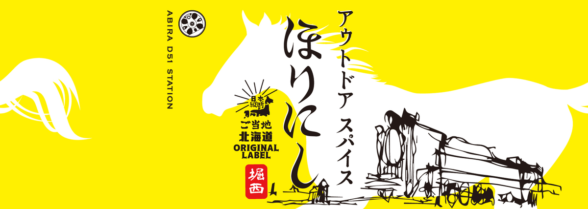 安平町の初夏の風物詩である菜の花畑の黄色を背景にデコイチの愛称で親しまれるSLとサラブレッドをあしらったラベル