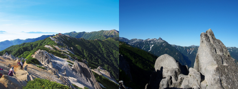 また、燕岳から大天井岳を経由して、槍ヶ岳へ向かう表銀座縦走コースや常念岳を経由して蝶ケ岳へ向かうパノラマ銀座コースは、北アルプスの中でも登山者が最も憧れるコースの1つで、北アルプスの大パノラマを存分に堪能できます。