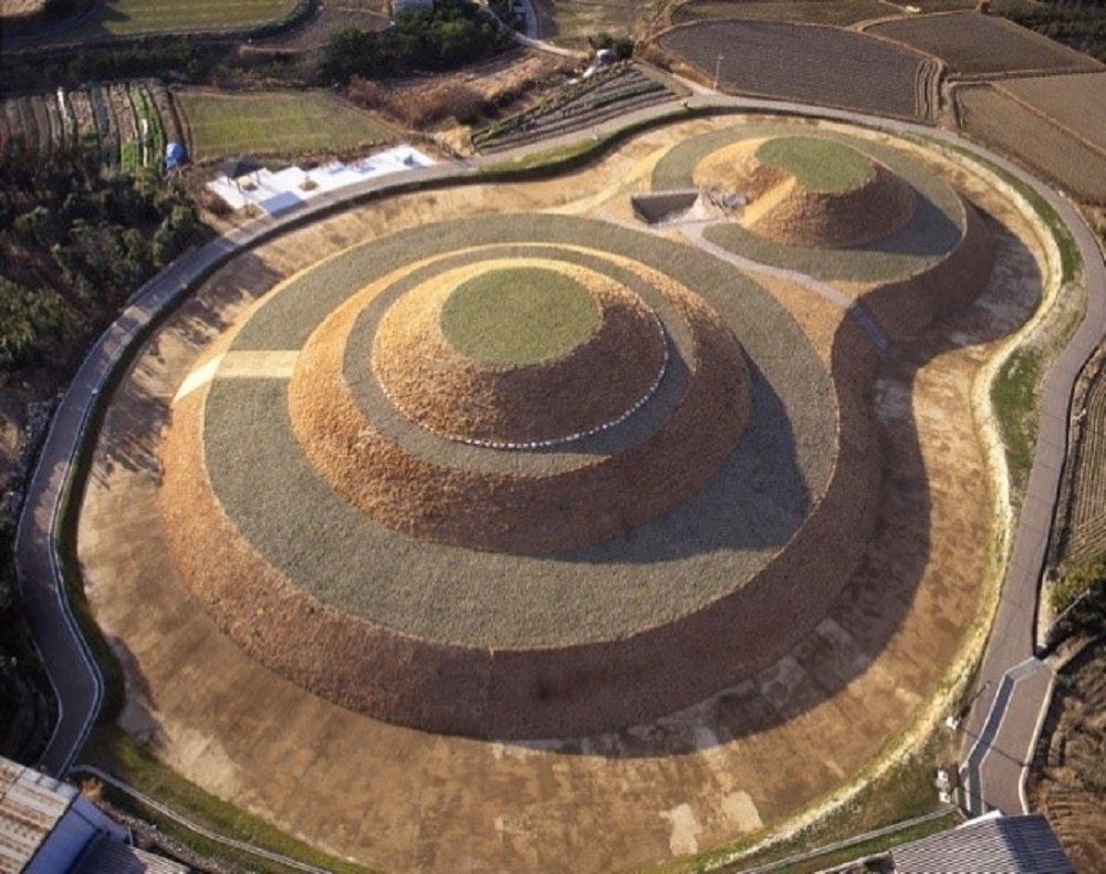 全国でも珍しい瓢形双円墳で、前方後円墳が衰退する古墳時代後期(6世紀末から7世紀初頭)の築造とされています。