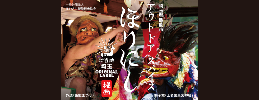 飯能まつりの山車にて独特な踊りを披露する「外道」(左)と上名栗星宮神社の「獅子舞」(右)をあしらったラベル