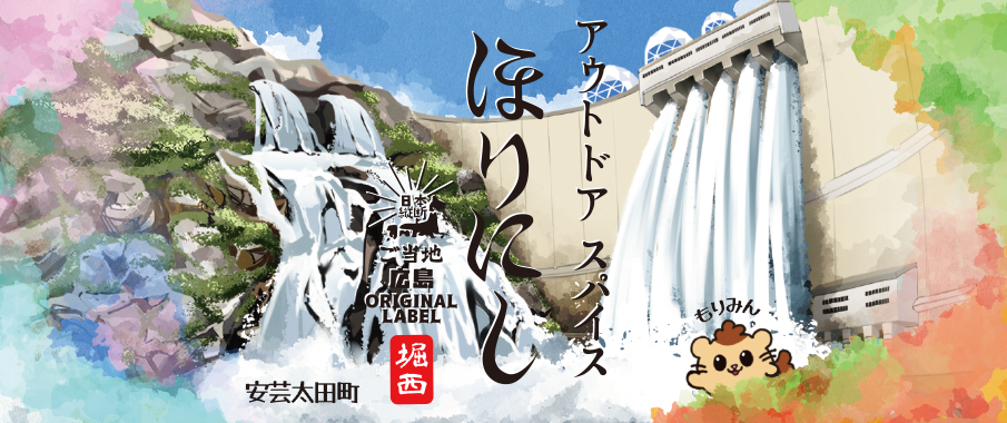 2024年6月15日(土)に広島県安芸太田町でご当地ほりにしの販売を開始しました。 日本屈指の名峡『三段峡』(左)と、地域の暮らしを守る『温井ダム』(右)のイラストをあしらったラベル 販売場所及び、広島県安芸太田町の情報は こちらをご覧ください