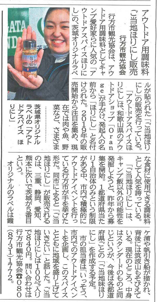 2023年3月24日付の茨城新聞で、3月12日から茨城県行方市で販売開始された「ご当地ほりにし」の取材を受け紹介されました。