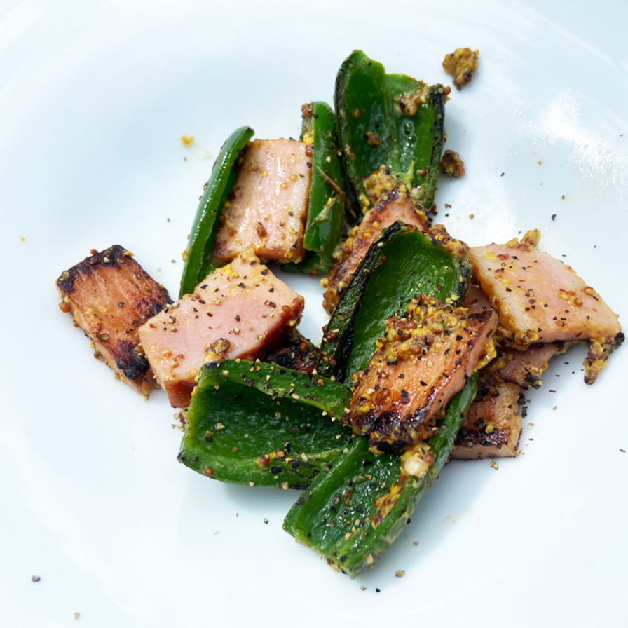 ベーコンとハラペーニョのマスタード炒め