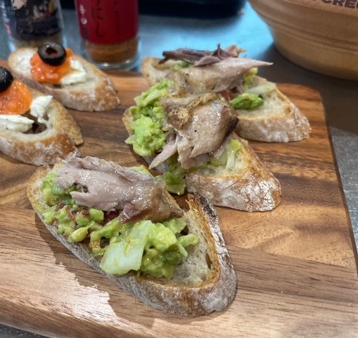 ほりにし仕立てのカマとアボカドとトマトのカナッペ