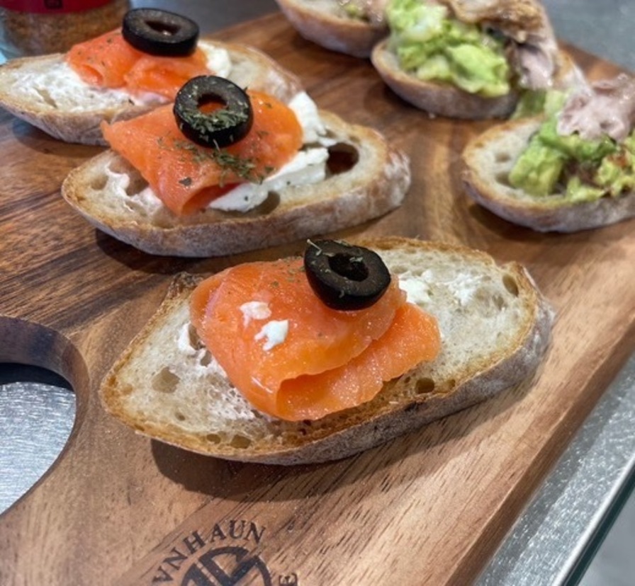 ほりにし香るスモークサーモンとチーズのカナッペ