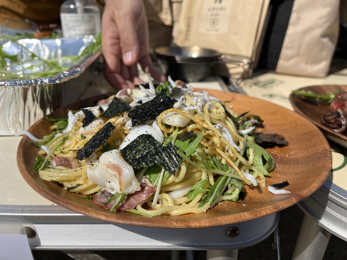 レモンを絞り、しらすを乗せ、カットした水菜を飾って完成です